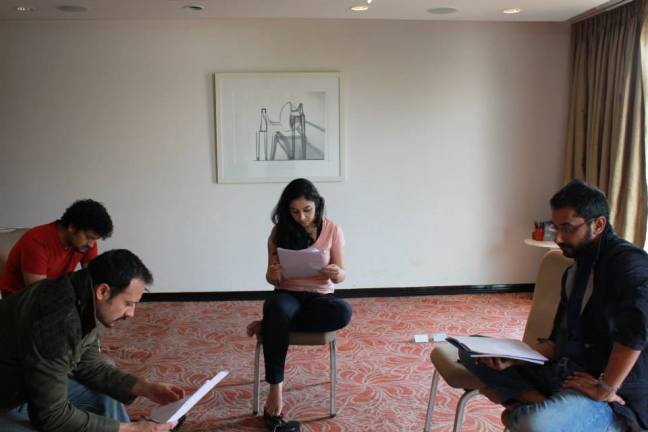Notes From NFDC’s Directors Lab – by writer & director Vasant Nath » Scene Rehearsal session – (left) Satyadeep Mishra with actors from FTII and the director