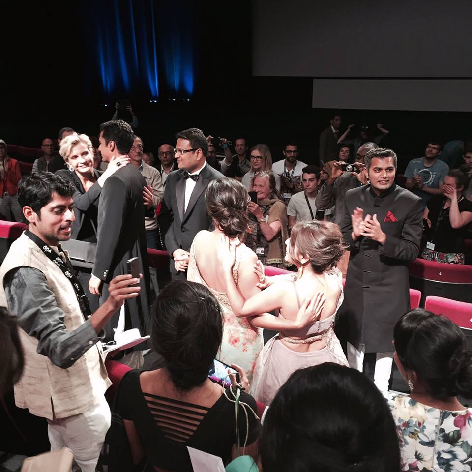 Writer Varun Grover in front, Mundra & Ghaywan at the back