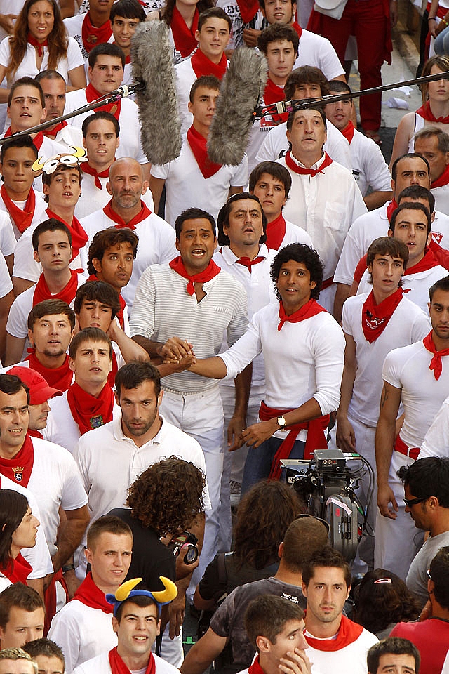 Yashji’s film is untitled yet, it’s with Katrina and Anushka. Yeah, we are shooting it from day after tomorrow. 50% is over and Inshahallah, it should be out by Eid. Lovely songs by Gulzar Sahab and Rahman Sahab, really nice. I think it’s a good thing that I have worked with them for long, so it feels nice. I feel at home working with them. And you know, when you’re doing a romantic film, it’s a little easy on the joints. Its just easier on the joints and muscles, that’s all. So it’ll be nice. Hopefully I’ll be able to present romantic film in a different way as an actor and I think Yashji and Adi have taken care that I play something different and still the film has something new, some new romantic quality to it and just the fact that the two girls are new and I have hardly worked with them. With Anushka i have done just one film, and with Katrina, have never worked, and that itself will be a high point for me as an actor, plus for the film. It will be really fresh and nice. I am really glad to work with them. I learn a lot from them. It’s wonderful to work with them and I learn a lot from them. They are really kind and gentle and they are really sweet girls and really wonderful actors because when we sit down and discuss things, they come out straight forward with what they think of the scene and that helps me in interpreting. I myself may be jaded sometimes, having done similar scenes, so when they have an interpretation, I think not only it is youthful but it is also, Ohhh, you could do it like this. It is also a big challenge for me to get out of my what you said tricks of romance and say do it differently. And I think a couple of scenes have been really helped by Katrina and even with Anushka I have worked with her before. Even Rab ne Bana di Jodi, its honest, its direct and its great fun. So I am really looking forward to it and
