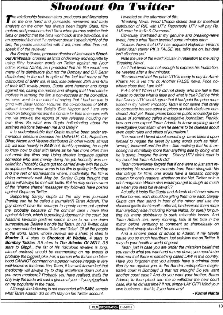 We started the segment “Just A Page” with completely different intention. But here’s a fun page in the same category. Read it to know more. It’s from the latest issue of trade magazine Film Information.